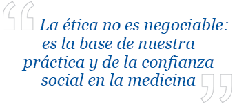 | La medicina no puede regirse únicamente por lógicas de mercado o de rentabilidad. La relación médico–paciente se sostiene en la confianza, y esa confianza descansa en valores éticos. Por eso decimos con firmeza que la ética no es negociable: es la base de nuestra práctica y de la confianza social en la medicina. Si se pierde ese horizonte, el riesgo es que la salud quede reducida a un negocio más, despojando a la profesión de su sentido social. |